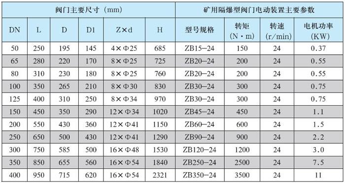 三、礦用本安型防爆電動球閥技術參數(shù)